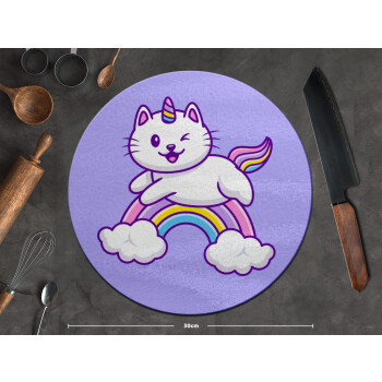 Cute cat unicorn, Επιφάνεια κοπής γυάλινη στρογγυλή (30cm)
