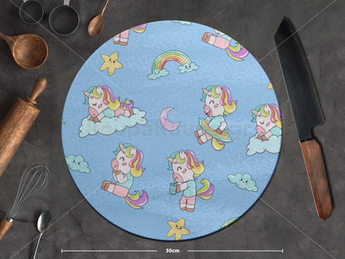 Unicorn pattern, Επιφάνεια κοπής γυάλινη στρογγυλή (30cm)