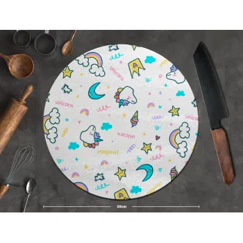 Unicorn pattern white, Επιφάνεια κοπής γυάλινη στρογγυλή (30cm)