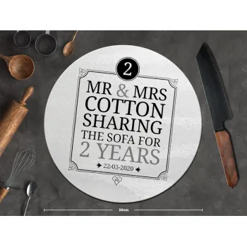 Mr & Mrs Sharing the sofa, Επιφάνεια κοπής γυάλινη στρογγυλή (30cm)