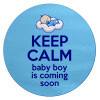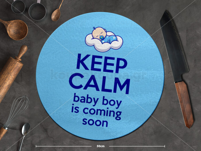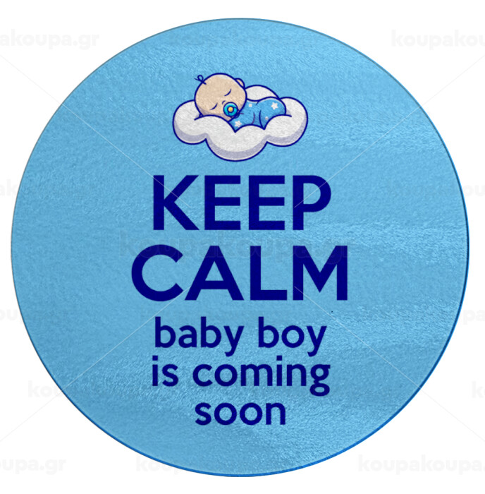 KEEP CALM baby boy is coming soon!!!, Επιφάνεια κοπής γυάλινη στρογγυλή (30cm)