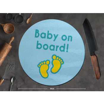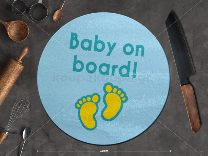 Baby on Board πατουσα Αγόρι, Επιφάνεια κοπής γυάλινη στρογγυλή (30cm)