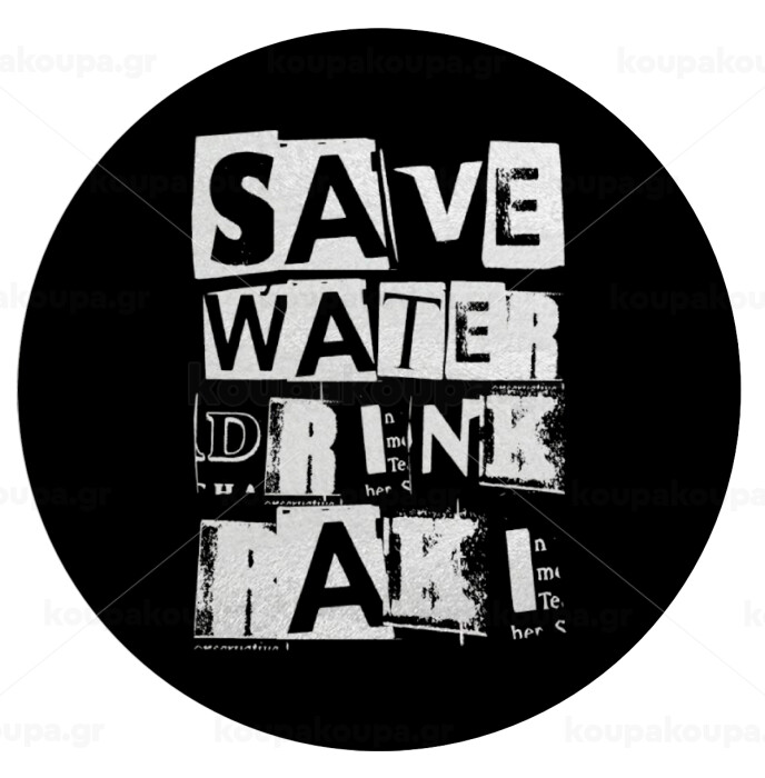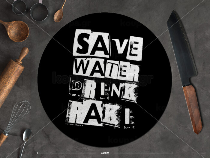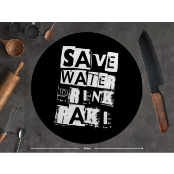 Save Water, Drink RAKI, Επιφάνεια κοπής γυάλινη στρογγυλή (30cm)