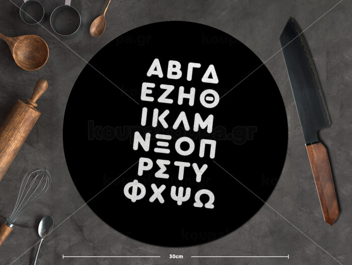 ΑΒΓΔ αλφάβητο, Επιφάνεια κοπής γυάλινη στρογγυλή (30cm)