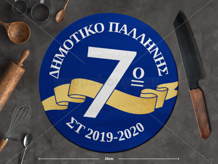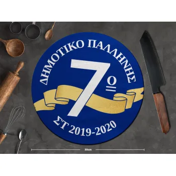 Σχολική μπλε με κορδέλα, Επιφάνεια κοπής γυάλινη στρογγυλή (30cm)