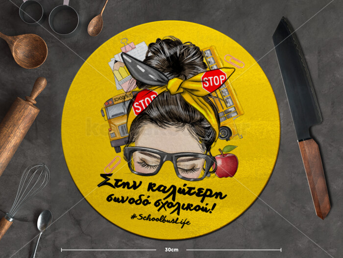 Στην καλύτερη συνοδό σχολικού!, Επιφάνεια κοπής γυάλινη στρογγυλή (30cm)