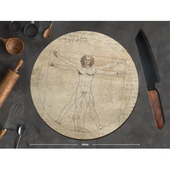 Leonardo da vinci Vitruvian Man, Επιφάνεια κοπής γυάλινη στρογγυλή (30cm)