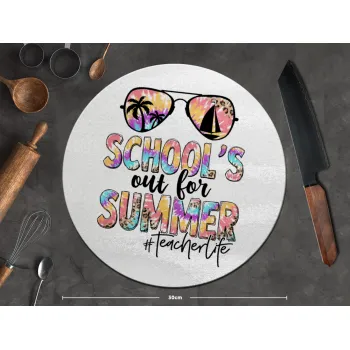 School's Out For Summer Teacher Life, Επιφάνεια κοπής γυάλινη στρογγυλή (30cm)