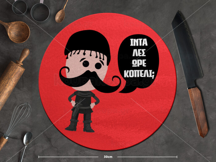 Κρητικός "Ίντα λες ωρέ κοπέλι", Επιφάνεια κοπής γυάλινη στρογγυλή (30cm)
