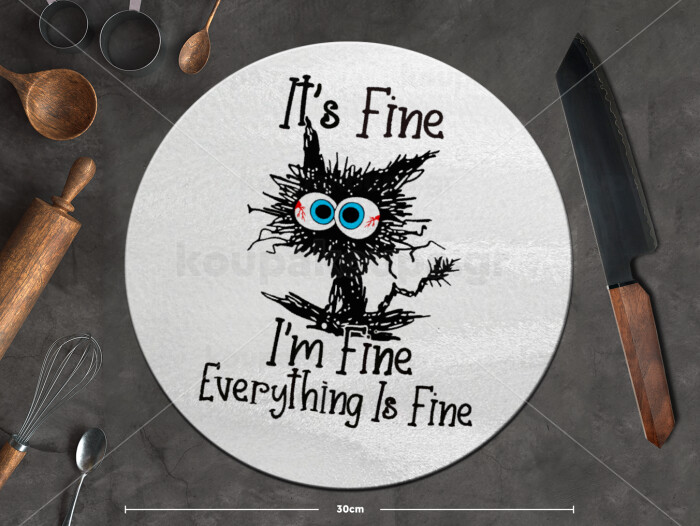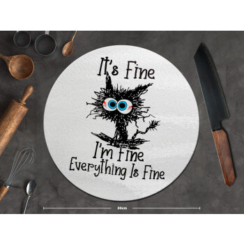 Cat, It's Fine I'm Fine Everything Is Fine, Επιφάνεια κοπής γυάλινη στρογγυλή (30cm)