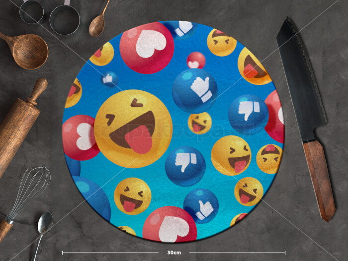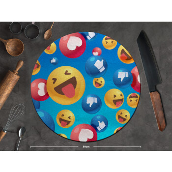 3D Emoji Collection, Επιφάνεια κοπής γυάλινη στρογγυλή (30cm)