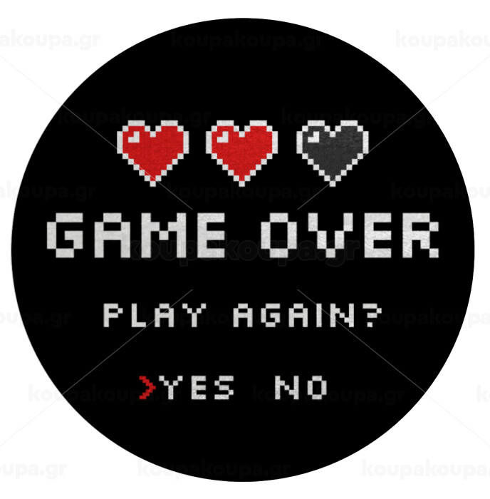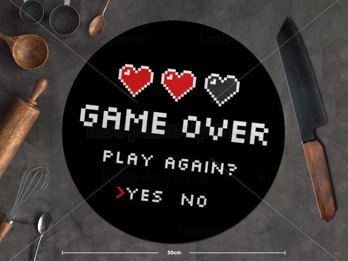 GAME OVER, Play again? YES - NO, Επιφάνεια κοπής γυάλινη στρογγυλή (30cm)