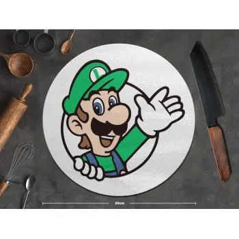 Super mario Luigi win, Επιφάνεια κοπής γυάλινη στρογγυλή (30cm)
