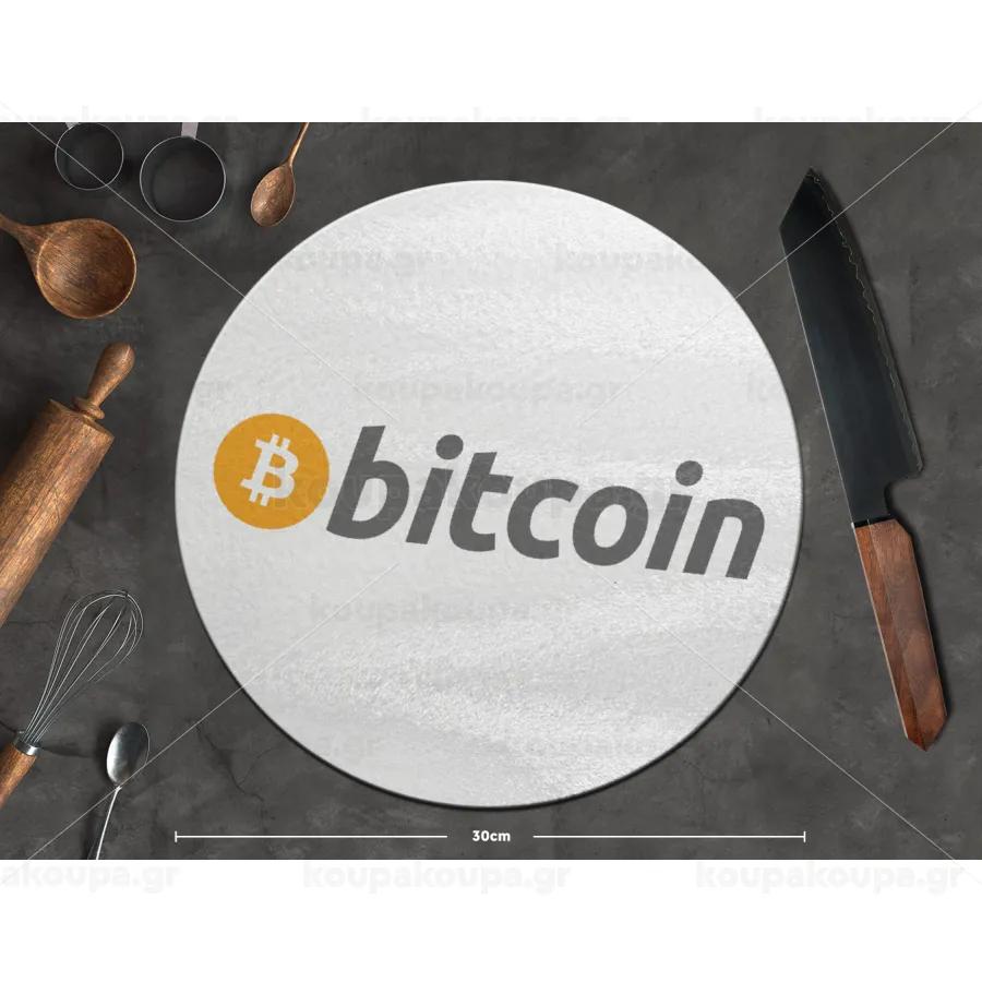 Bitcoin Crypto, Επιφάνεια κοπής γυάλινη στρογγυλή (30cm)