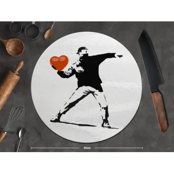 Banksy (The heart thrower), Επιφάνεια κοπής γυάλινη στρογγυλή (30cm)