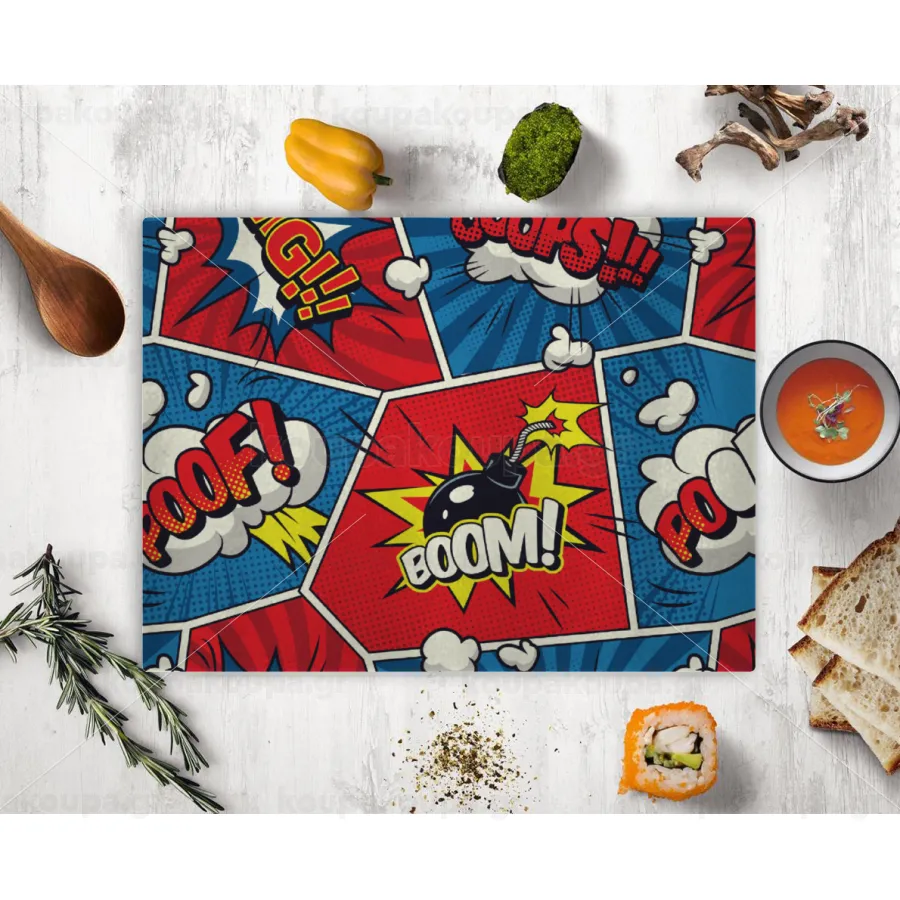 Γυάλινη σαγρέ επιφάνεια κοπής κατάλληλη για προστασία του πάγκου της κουζίνας και της τραπεζαρίας. Μεγάλη υγιεινή λόγο ότι δεν έχει πόρους σαν τις ξύλινες επιφάνειες, καθαρίζει εύκολα. Περιέχει σταγόνες σιλικόνης για να μην έρχεται σε επαφή άμεσα με την επιφάνεια του πάγκου.
