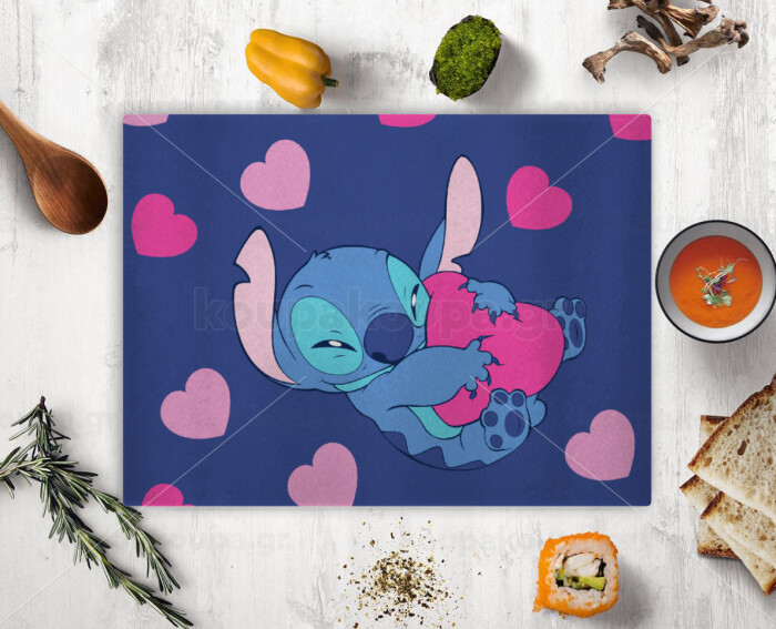 Lilo & Stitch hugs and hearts, Επιφάνεια κοπής γυάλινη (38x28cm)