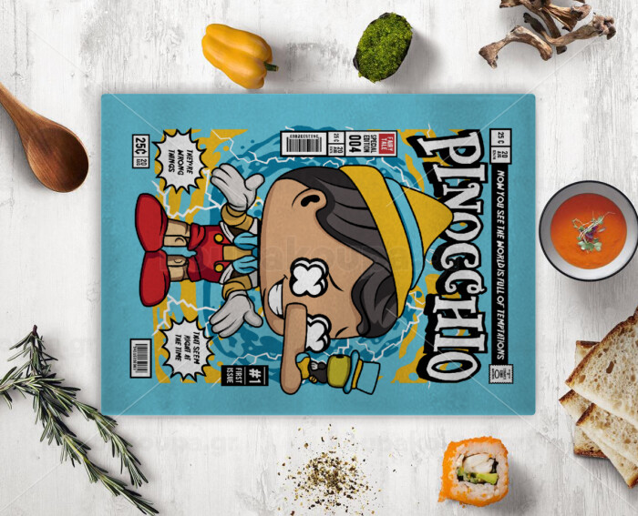 Pinocchio, Επιφάνεια κοπής γυάλινη (38x28cm)