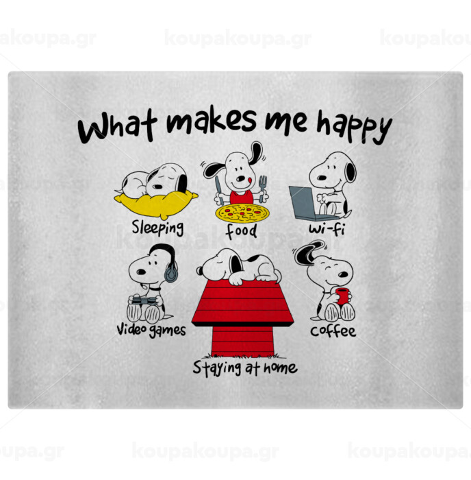 Snoopy what makes my happy, Επιφάνεια κοπής γυάλινη (38x28cm)