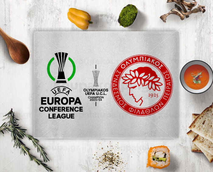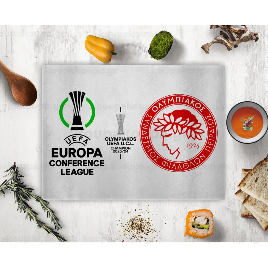 Ολυμπιακός νικητής UEFA Europa Conference League Champion 2023/24, Επιφάνεια κοπής γυάλινη (38x28cm)