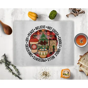 Joy, Peace, Believe, Hot Cocoa, Carols, Επιφάνεια κοπής γυάλινη (38x28cm)
