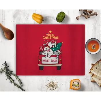 Merry Christmas cats in car, Επιφάνεια κοπής γυάλινη (38x28cm)