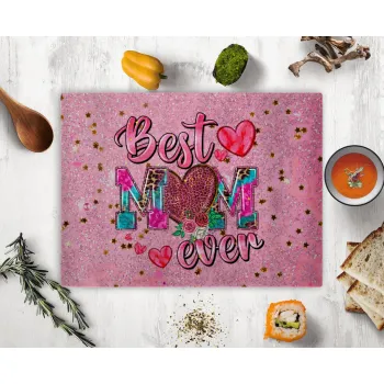 Best mom ever Mother's Day pink, Επιφάνεια κοπής γυάλινη (38x28cm)