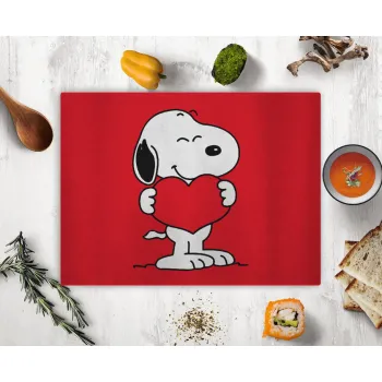 Snoopy takemy heart, Επιφάνεια κοπής γυάλινη (38x28cm)