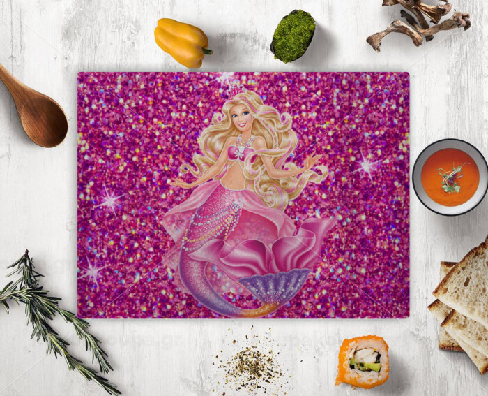 Barbie γοργόνα , Επιφάνεια κοπής γυάλινη (38x28cm)