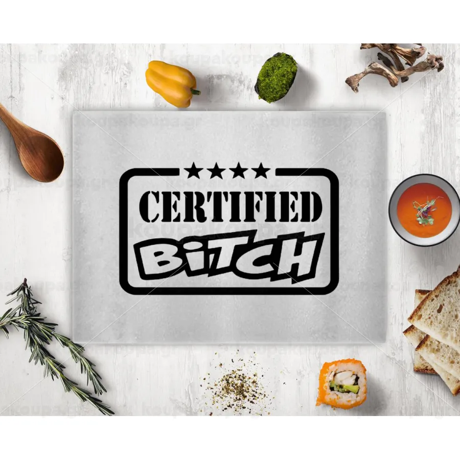 Certified Bitch, Επιφάνεια κοπής γυάλινη (38x28cm)