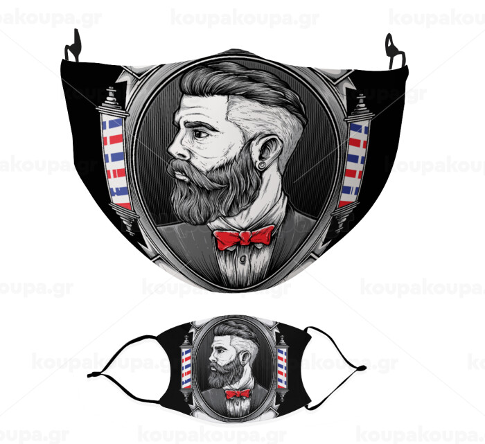 Barber shop, Μάσκα υφασμάτινη Ενηλίκων πολλαπλών στρώσεων με υποδοχή φίλτρου