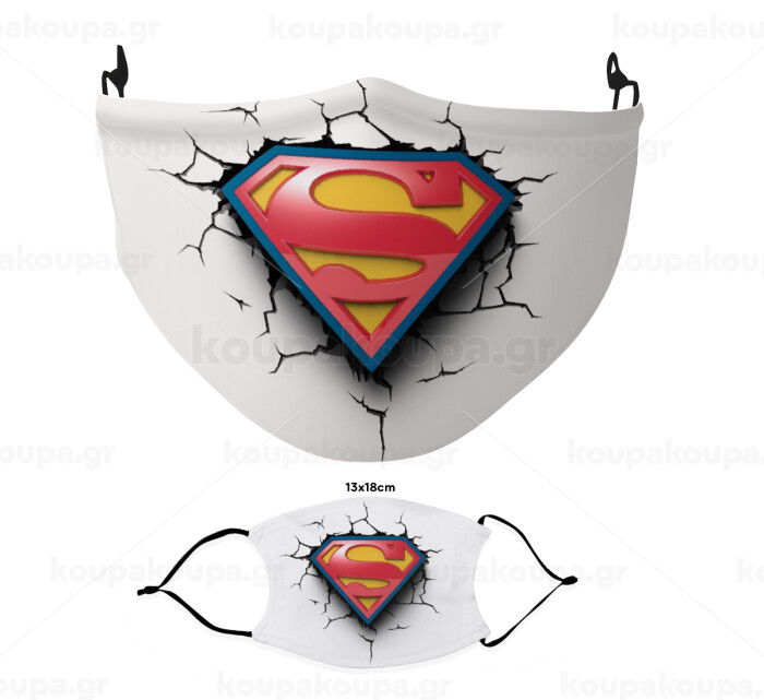 Superman cracked, Μάσκα υφασμάτινη Ενηλίκων πολλαπλών στρώσεων με υποδοχή φίλτρου