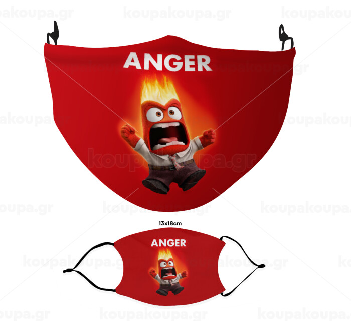 Anger, Θυμός, Μάσκα υφασμάτινη Ενηλίκων πολλαπλών στρώσεων με υποδοχή φίλτρου
