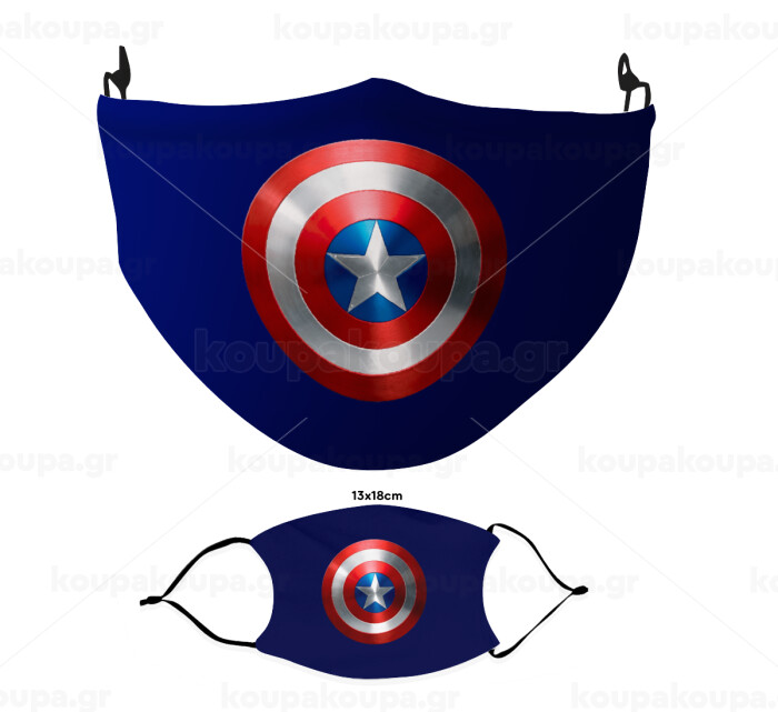 Captain America, Μάσκα υφασμάτινη Ενηλίκων πολλαπλών στρώσεων με υποδοχή φίλτρου
