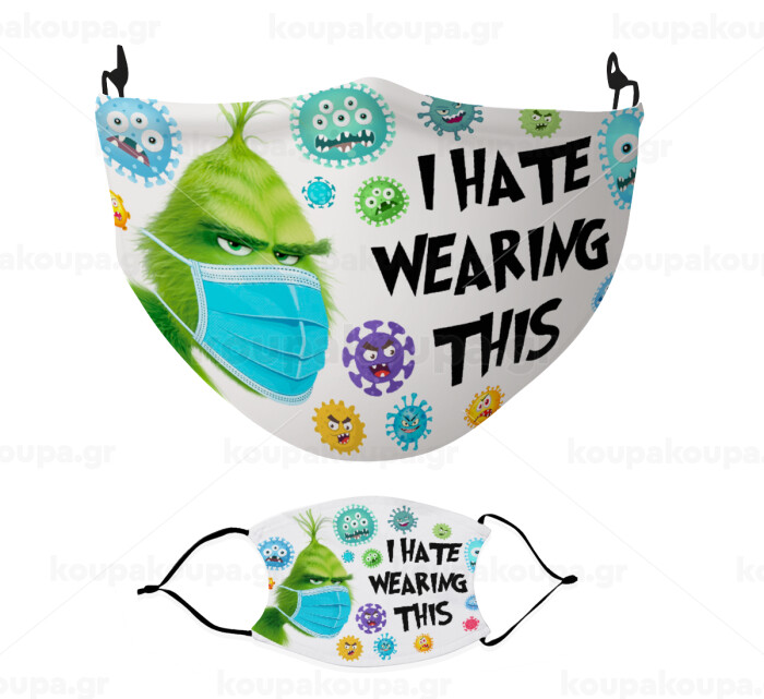 Grinch i hate wearing this, Μάσκα υφασμάτινη Ενηλίκων πολλαπλών στρώσεων με υποδοχή φίλτρου