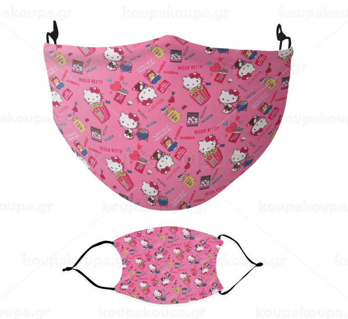 Hello kitty, Μάσκα υφασμάτινη Ενηλίκων πολλαπλών στρώσεων με υποδοχή φίλτρου