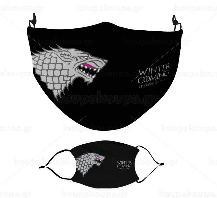GOT House of Starks, winter coming, Μάσκα υφασμάτινη Ενηλίκων πολλαπλών στρώσεων με υποδοχή φίλτρου