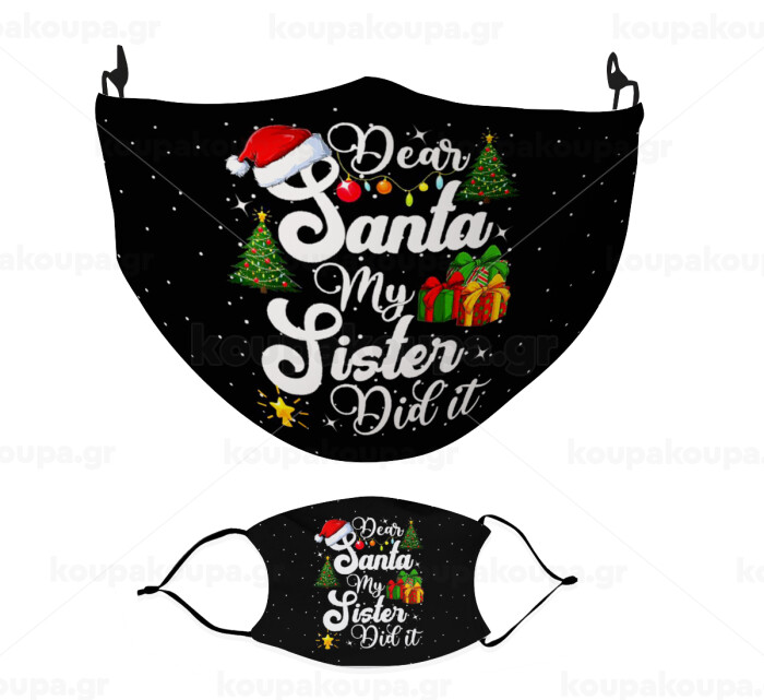 Dear santa my Sister Did it, Μάσκα υφασμάτινη Ενηλίκων πολλαπλών στρώσεων με υποδοχή φίλτρου
