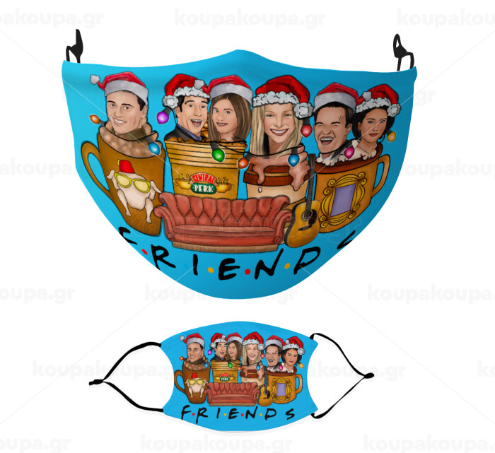 FRIENDS xmas, Μάσκα υφασμάτινη Ενηλίκων πολλαπλών στρώσεων με υποδοχή φίλτρου