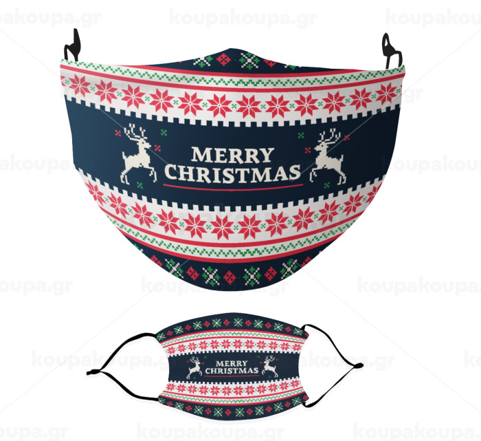 Merry Christmas Vintage, Μάσκα υφασμάτινη Ενηλίκων πολλαπλών στρώσεων με υποδοχή φίλτρου