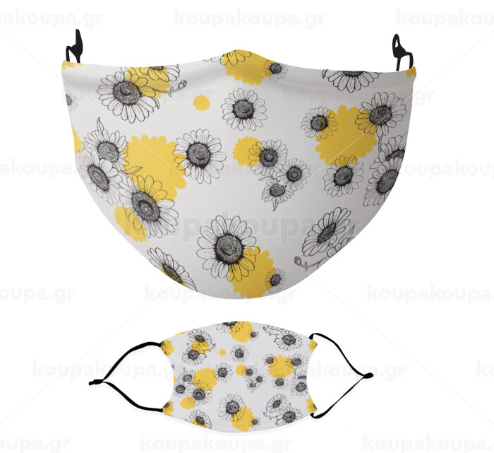 Flowers, Μάσκα υφασμάτινη Ενηλίκων πολλαπλών στρώσεων με υποδοχή φίλτρου