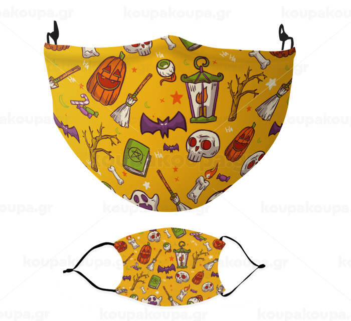 Happy Halloween, Μάσκα υφασμάτινη Ενηλίκων πολλαπλών στρώσεων με υποδοχή φίλτρου