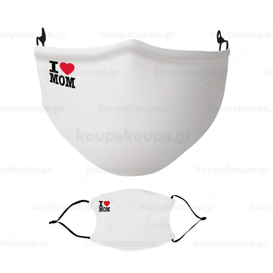 I LOVE MOM, Μάσκα υφασμάτινη Ενηλίκων πολλαπλών στρώσεων με υποδοχή φίλτρου