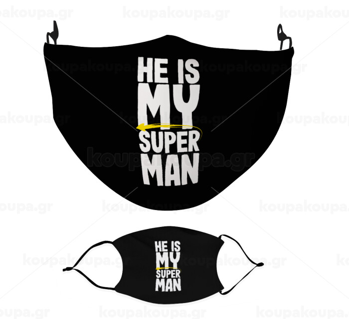 He is my superman, Μάσκα υφασμάτινη Ενηλίκων πολλαπλών στρώσεων με υποδοχή φίλτρου