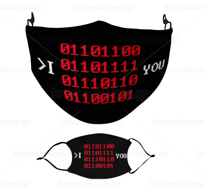I .... YOU, binary secret MSG, Μάσκα υφασμάτινη Ενηλίκων πολλαπλών στρώσεων με υποδοχή φίλτρου