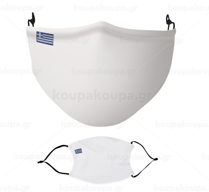 Ελληνική σημαία μικρή λευκή, Μάσκα υφασμάτινη Ενηλίκων πολλαπλών στρώσεων με υποδοχή φίλτρου