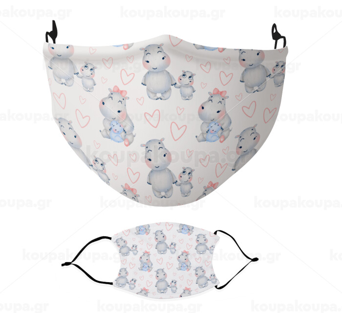 Ιπποπόταμος, Μάσκα υφασμάτινη Ενηλίκων πολλαπλών στρώσεων με υποδοχή φίλτρου