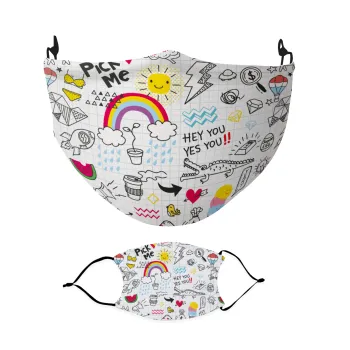 Doodle kids, Μάσκα υφασμάτινη Ενηλίκων πολλαπλών στρώσεων με υποδοχή φίλτρου