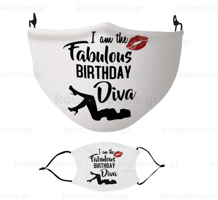 I am the fabulous Birthday Diva, Μάσκα υφασμάτινη Ενηλίκων πολλαπλών στρώσεων με υποδοχή φίλτρου