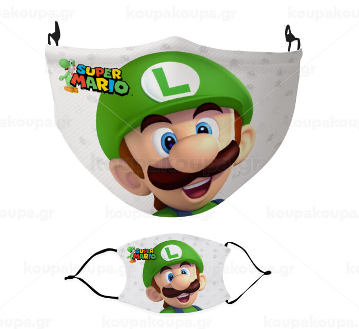 Super mario Luigi, Μάσκα υφασμάτινη Ενηλίκων πολλαπλών στρώσεων με υποδοχή φίλτρου